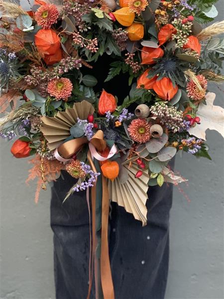 Our bespoke wreaths are handmade to order and built to last and designed with dried flowers, berries, foliage and decorative sundries for a stunning bespoke wreath.