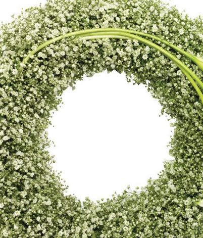 A simply stunning white Gypsophila wreath featuring white Calla Lilies. size of wreath base 12"