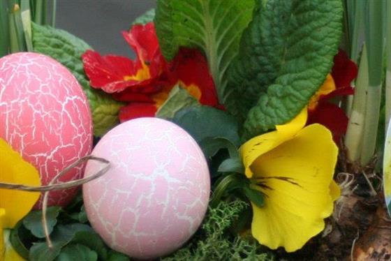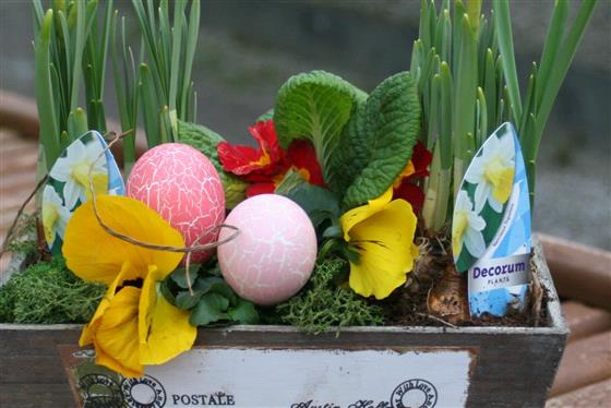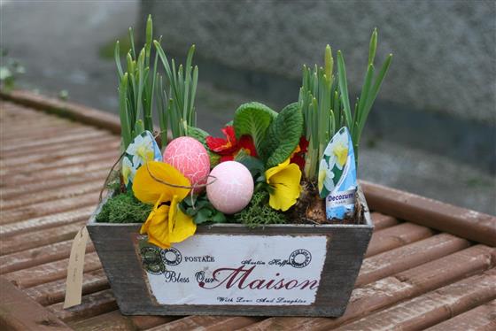 A cheerful Easter-inspired planter bursting with fresh seasonal colour and charm.