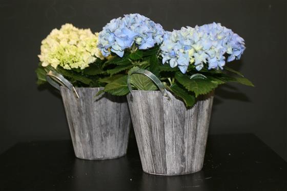 A beautiful Hydrangea planted arrangement featuring large, full blooms in soft seasonal tones, presented in a rustic-style planter. Known for their elegant, cloud-like flowers, Hydrangeas bring a timeless and natural charm to any space.