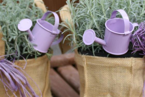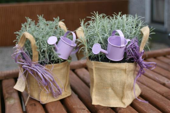 A charming lavender planted arrangement presented in a rustic fabric gift bag, finished with decorative detailing and a miniature watering can accent. Featuring soft silvery foliage and a gentle fragrance, this plant brings a relaxed, natural feel to any space.